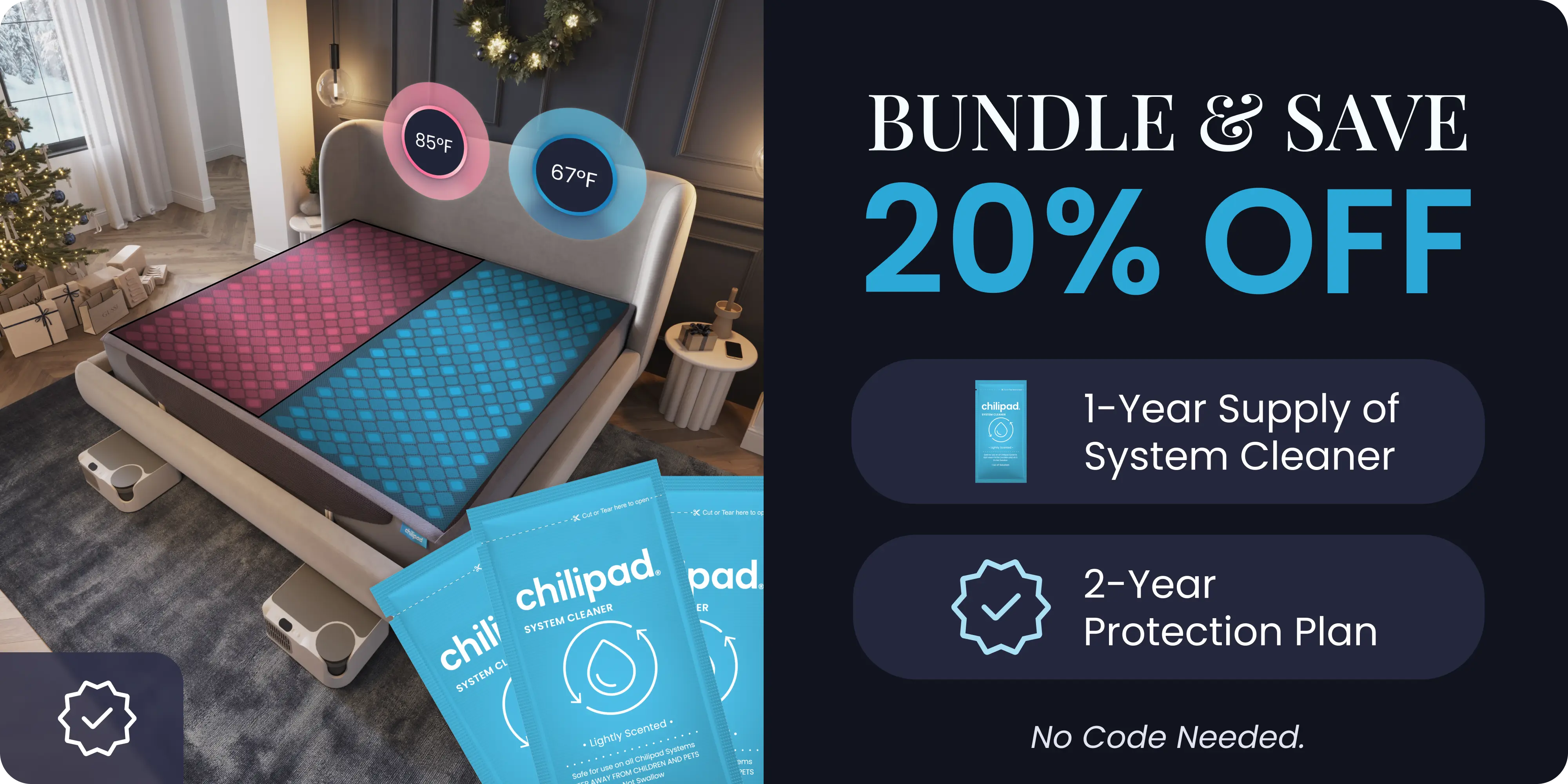 Holiday Bundle | 20% Off Experience personalized sleep like never before. Seamlessly heat or cool your mattress between 55°F and 115°F. Plus, each bundle includes a one-year supply of system cleaner and a two-year protection plan for added value.